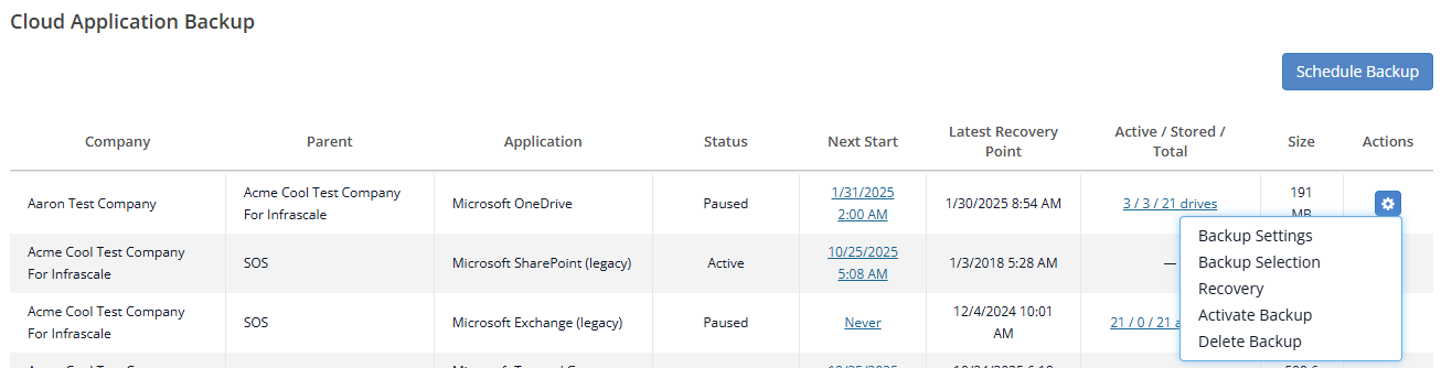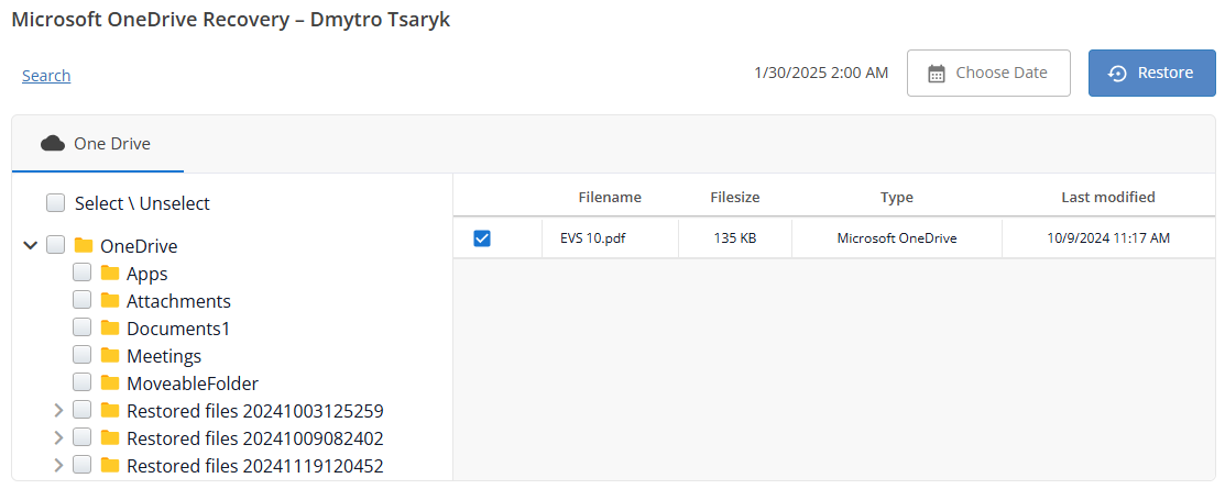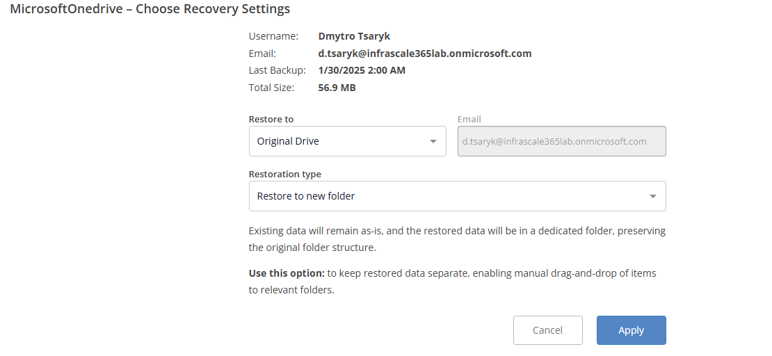 Restore and export Microsoft OneDrive backups in Cloud Application Backup