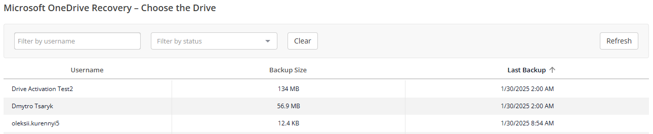 In the list of accounts, locate a user account for which you want to restore data, and click on it.
