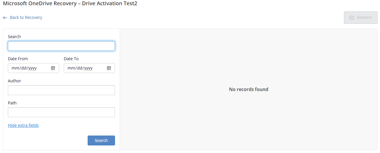 - Alternatively, instead of browsing manually, click Search at the top of the recovery page and enter search criteria such as: